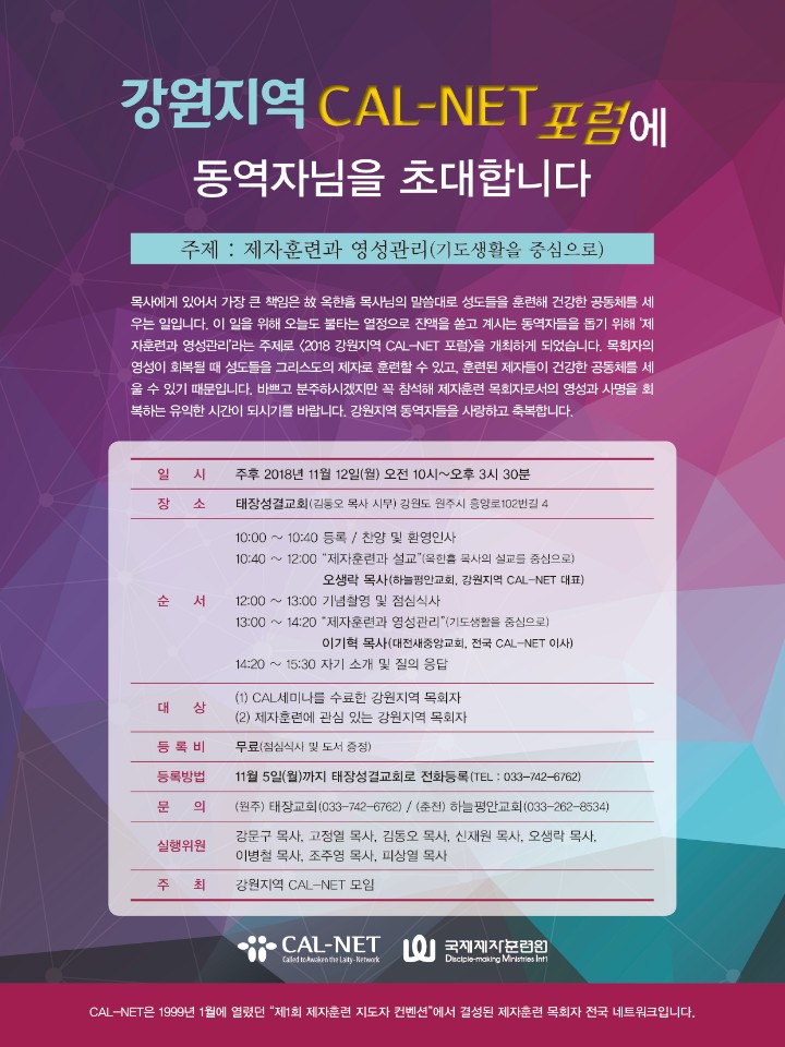 강원지역 CAL-NET포럼 안내 / 11월 12일(월) / 태장성결교회