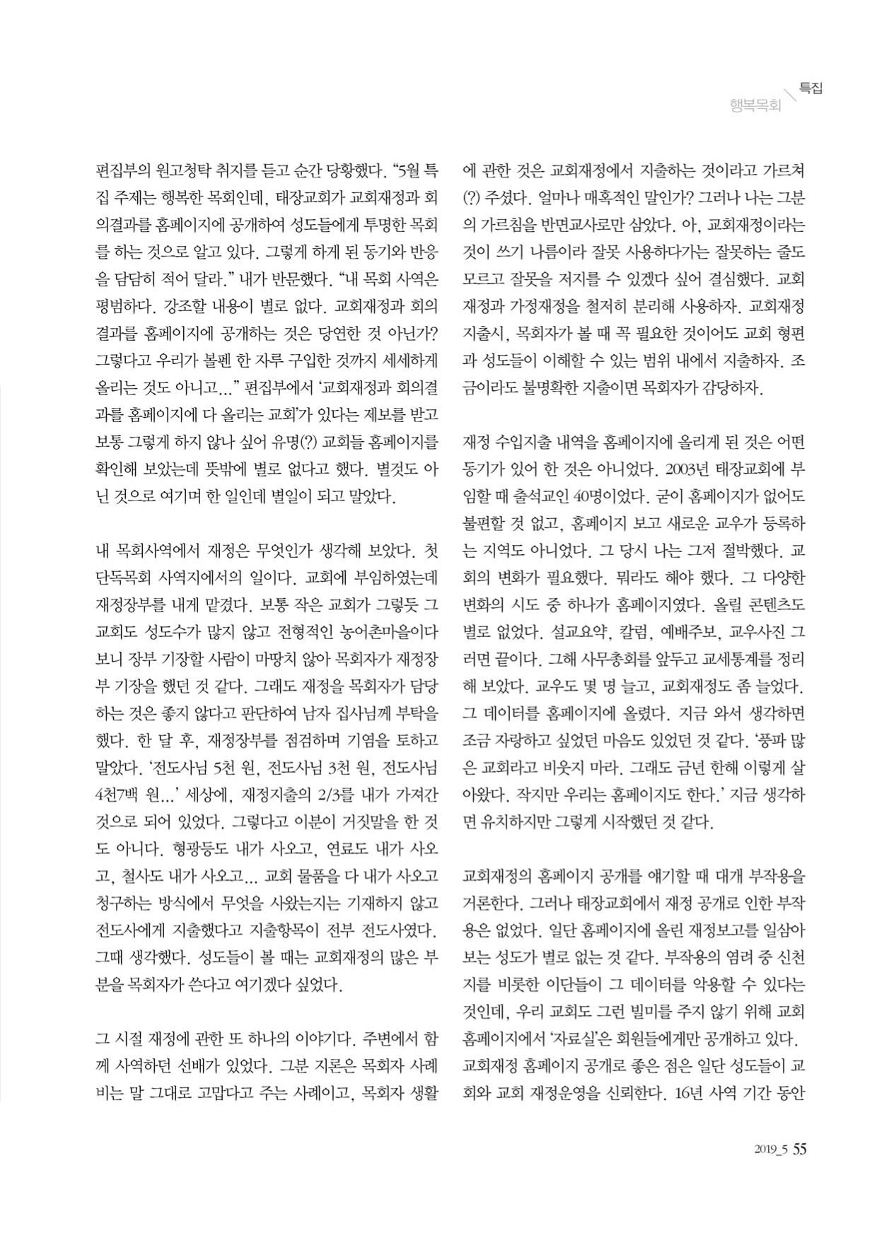 활천 2019년 5월 '태장교회 기사 - 행복목회 '더디 가더라도 함께 가는 길'